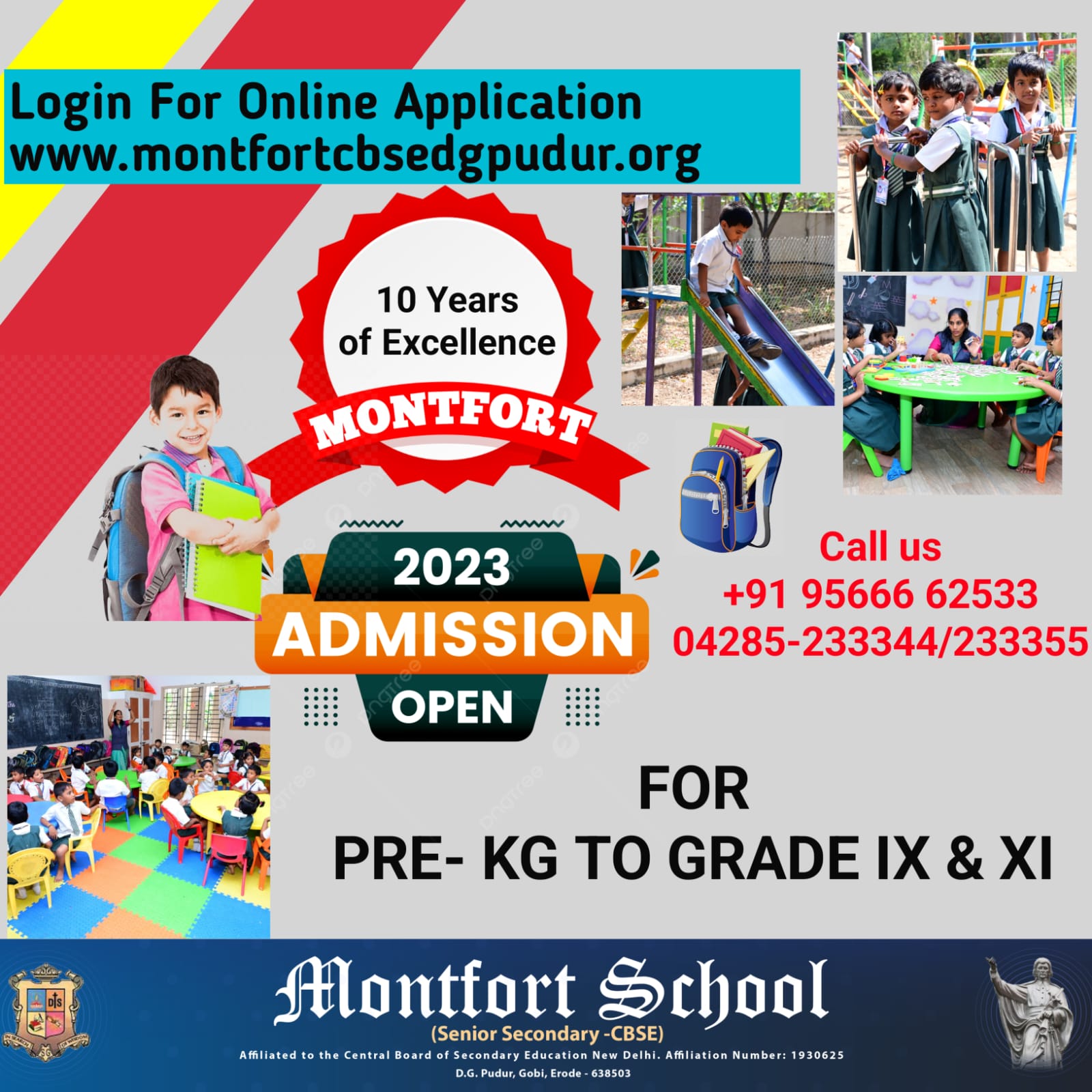 Montfort School is located at D.G.Pudur Erode (Dt) on the Sathy – Athany main road. The school was started in the year 2012 (18.06.2012) by MONTFORT BROTHERS of ST.GABRIEL –BENGALURU PROVINCE. The school follows CBSE stream and it has 663 students in its roll, studying from PRE-KG to XII th std. The school has a dedicated band of 44 teaching and 11 non-teaching staff. The school has sufficient infrastructure, to cater to the needs of the children. A vast playground for all types of games and Sports activities, transport facilities, Laboratories, Kids Park, Labs, a well-equipped Library are available for Read More